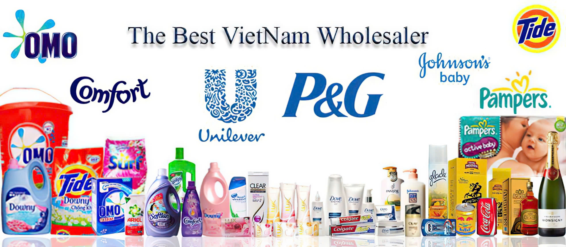 Chăm sóc gia đình: Các sản phẩm giặt tẩy, vệ sinh nhà cửa từ các thương hiệu nổi tiếng như Omo, Comfort, Sunlight, và Downy.